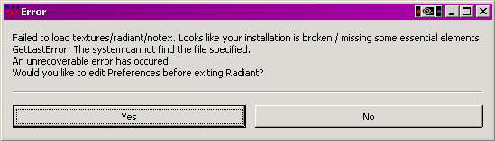 Make sure you have the "common" and "radiant" textures installed. Make sure you have the project file and entities.def.